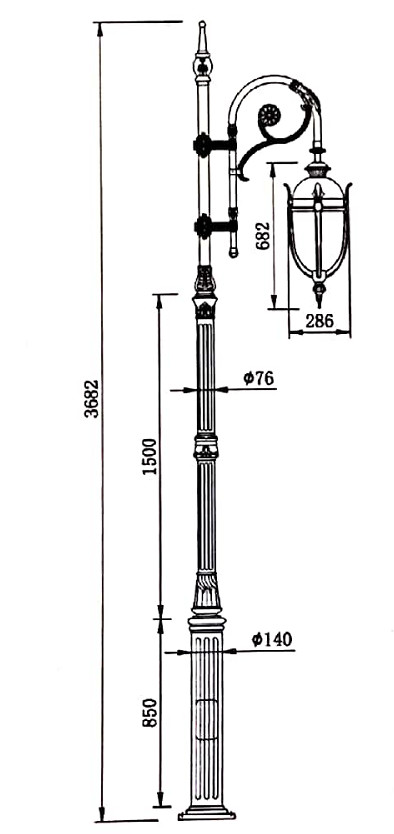 Le poteau de lampe est fait d'acier. Après la galvanisation à chaud, la surface du poteau de lampe est enduite de la poudre de polyester.